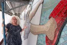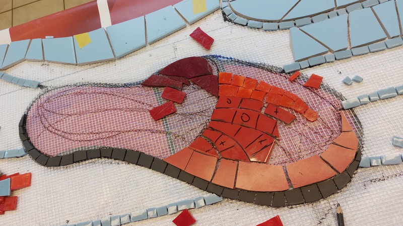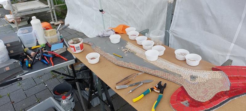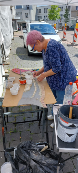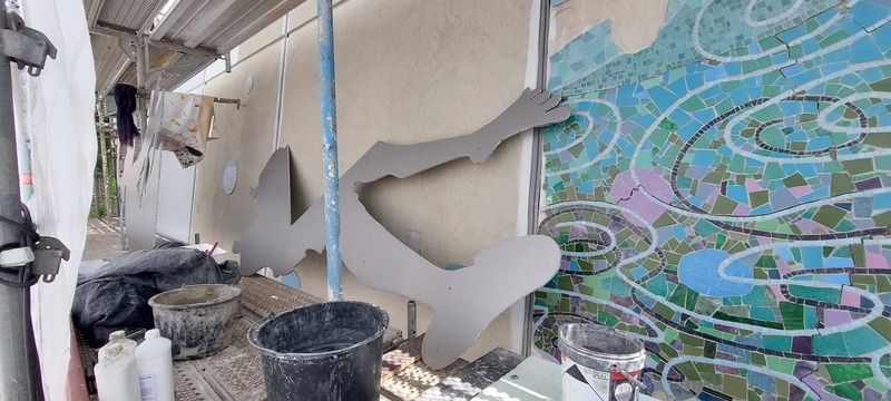 Kunst am Bau - Teilnahme an der Ausführung Mosaikgestaltung Stützwand mit dem Konzept "Zeitsprung", Pirmasens